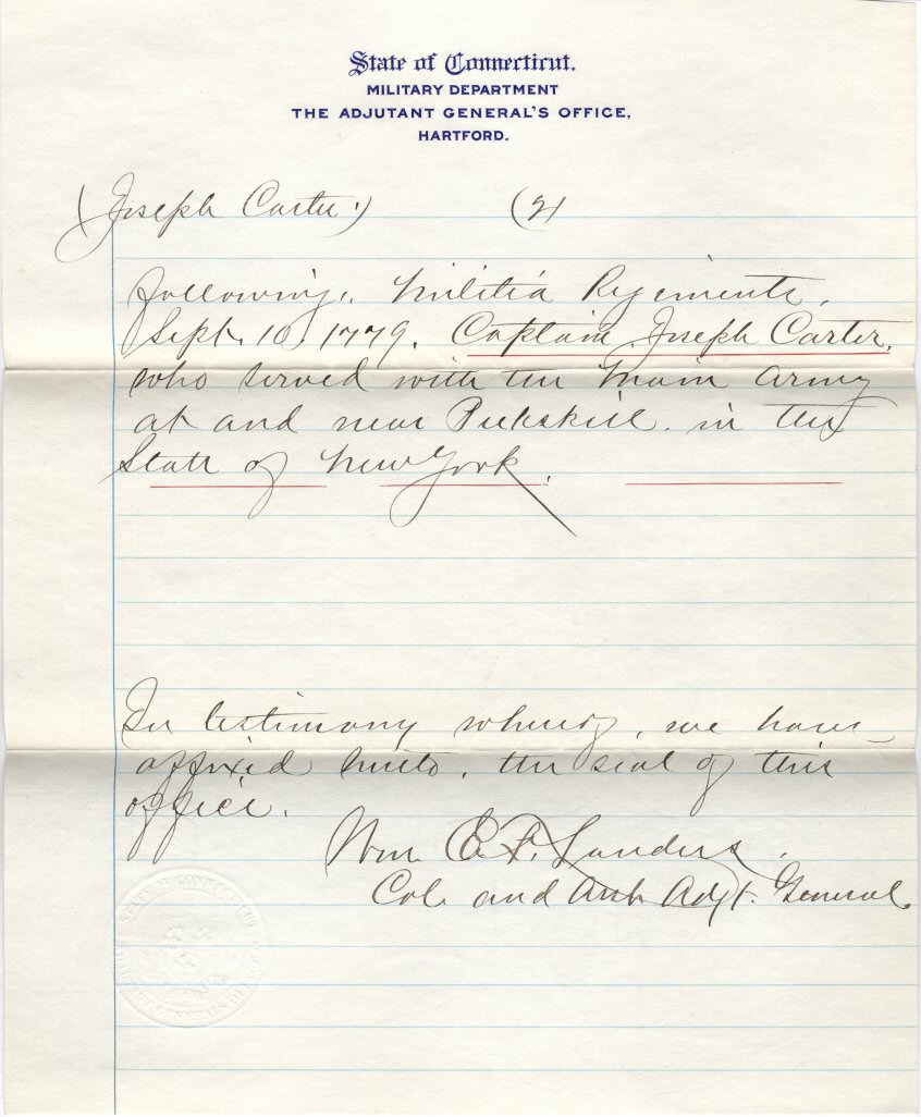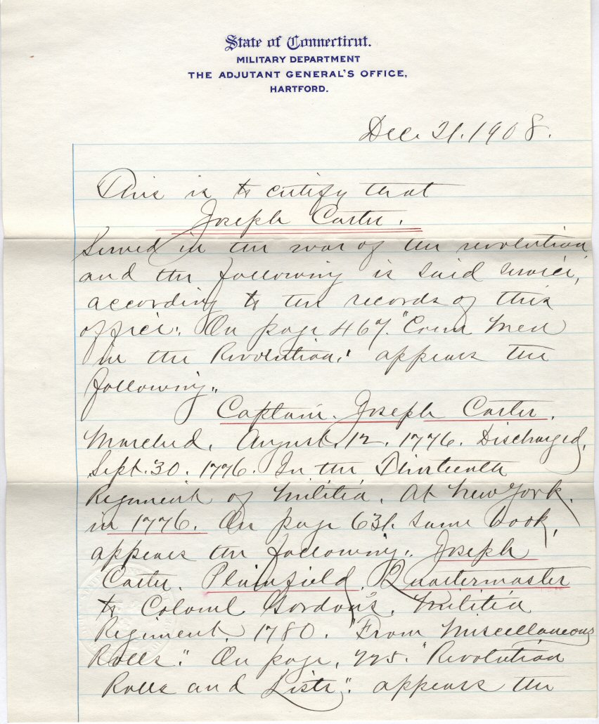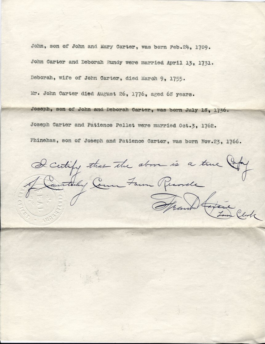Carter, was born July 18, 1736. Joseph Carter and Patience Pellet were