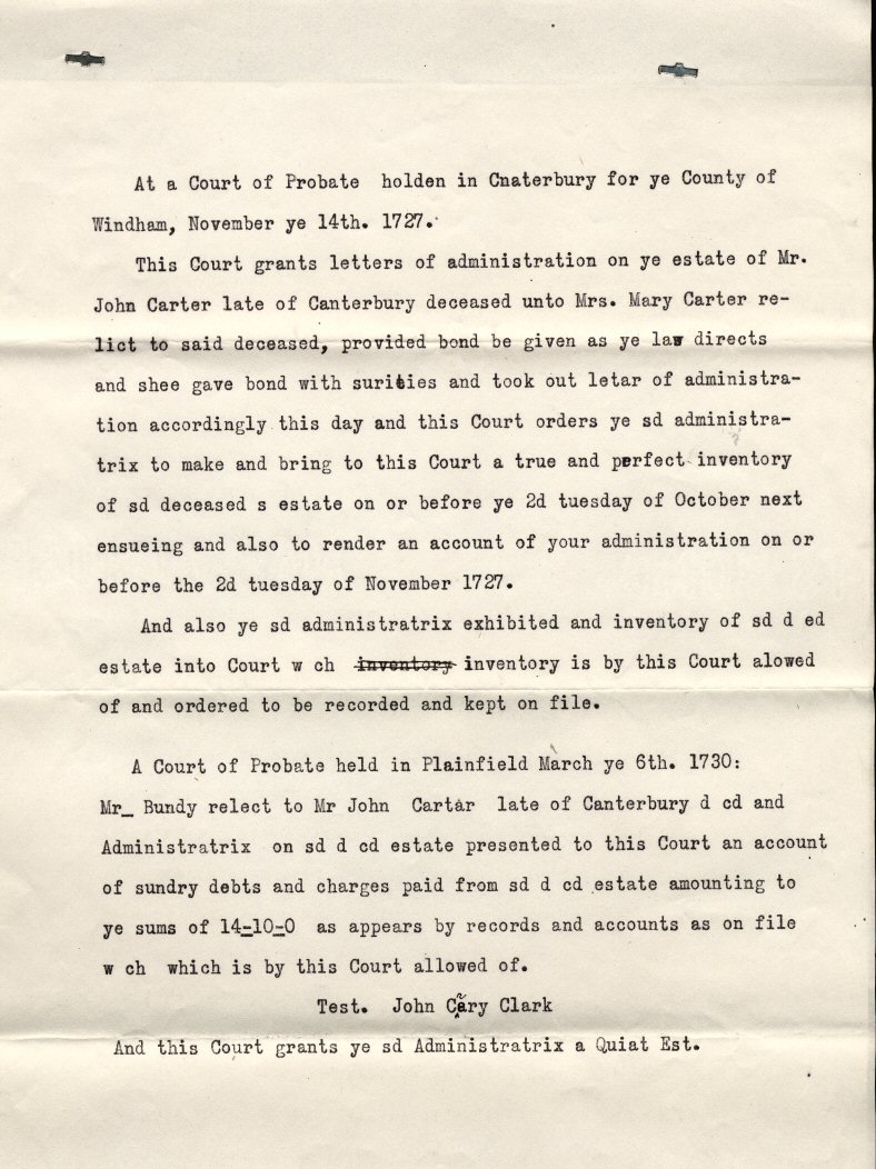 of Canterbury, Connecticut: John Carter and Deborah Bundy were married