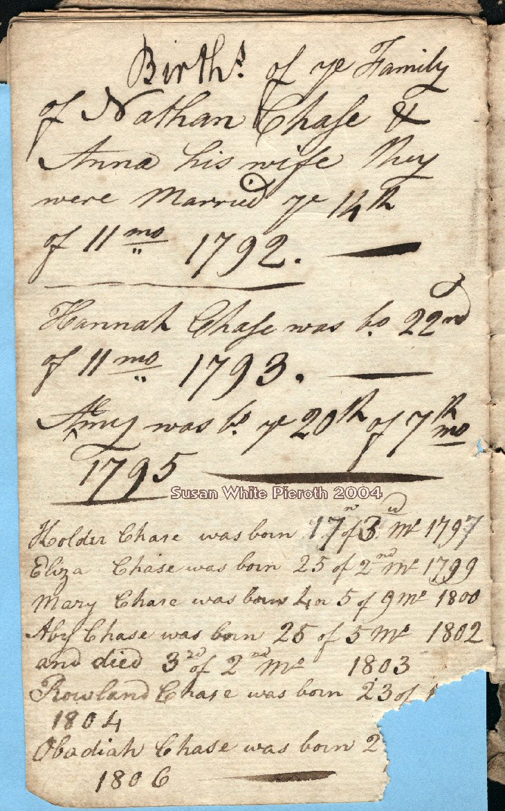 Nathan Chase, Ana, Hannah Chase, Amy, Holder, Eliza, Mary, Aby,