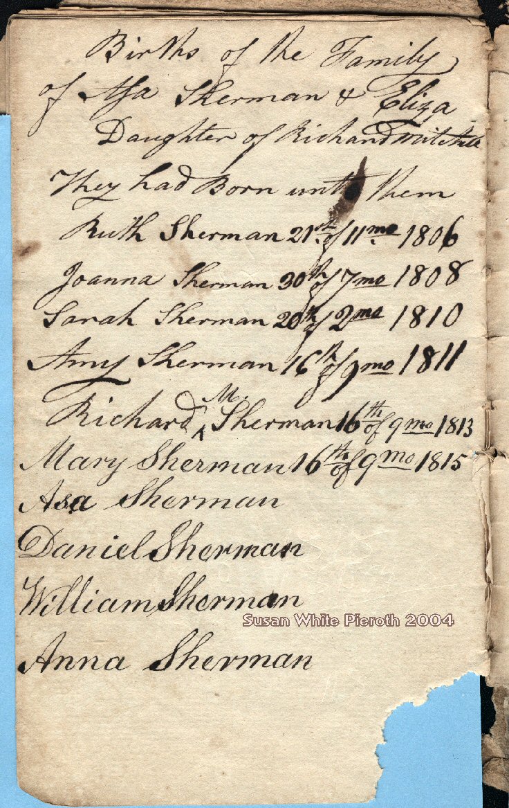 Eliza ?, Richard ?, Asa Sherman, Ruth Sherman, Joanna, Sarah, Amy,