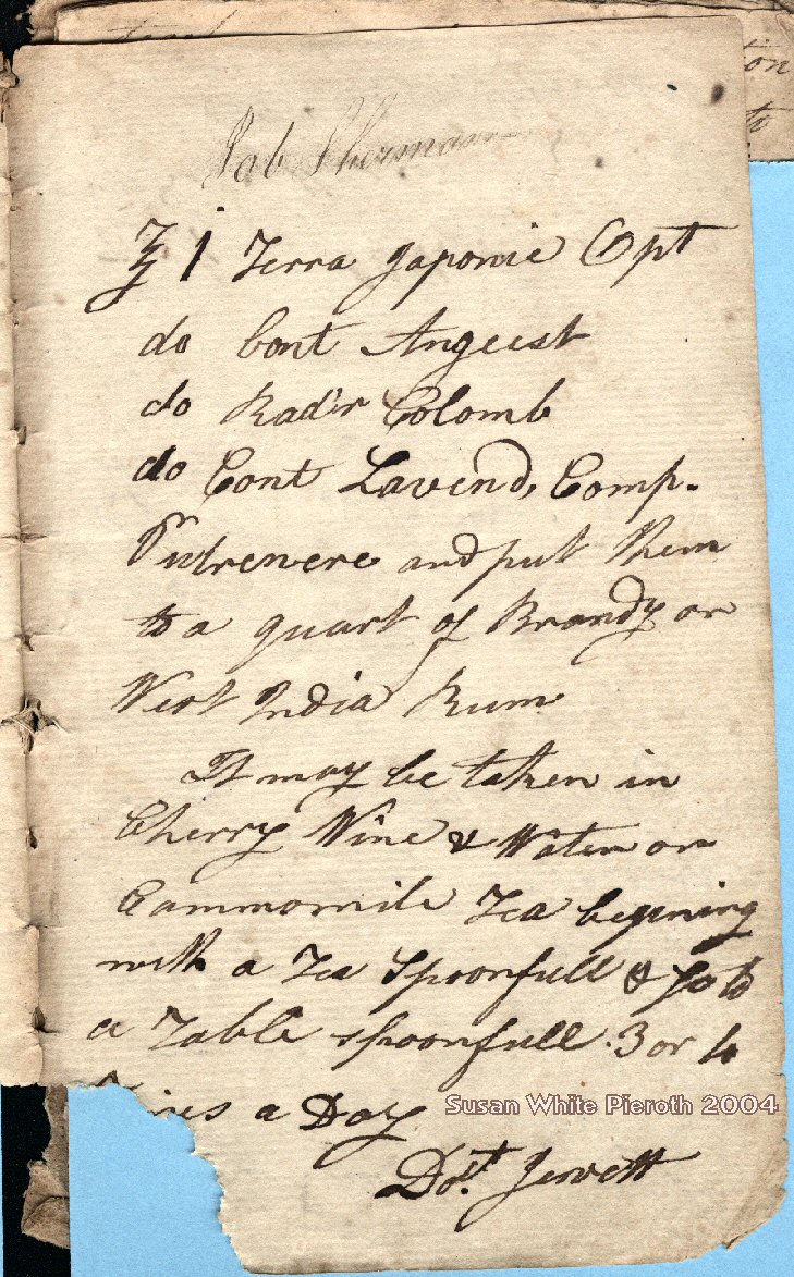 A recipe for something - possibly a tonic. Job Sherman written at top.