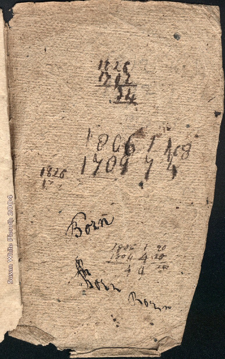 As you can see, this small paper booklet has been subject to some damage. The scans have been done with a contrasting colored paper in back of the pages so the material underneath will not be seen. Pages are numbered for convenience with blank pages not being scanned or numbered. Only the names are listed. See the images (about 300 kb each) for details.