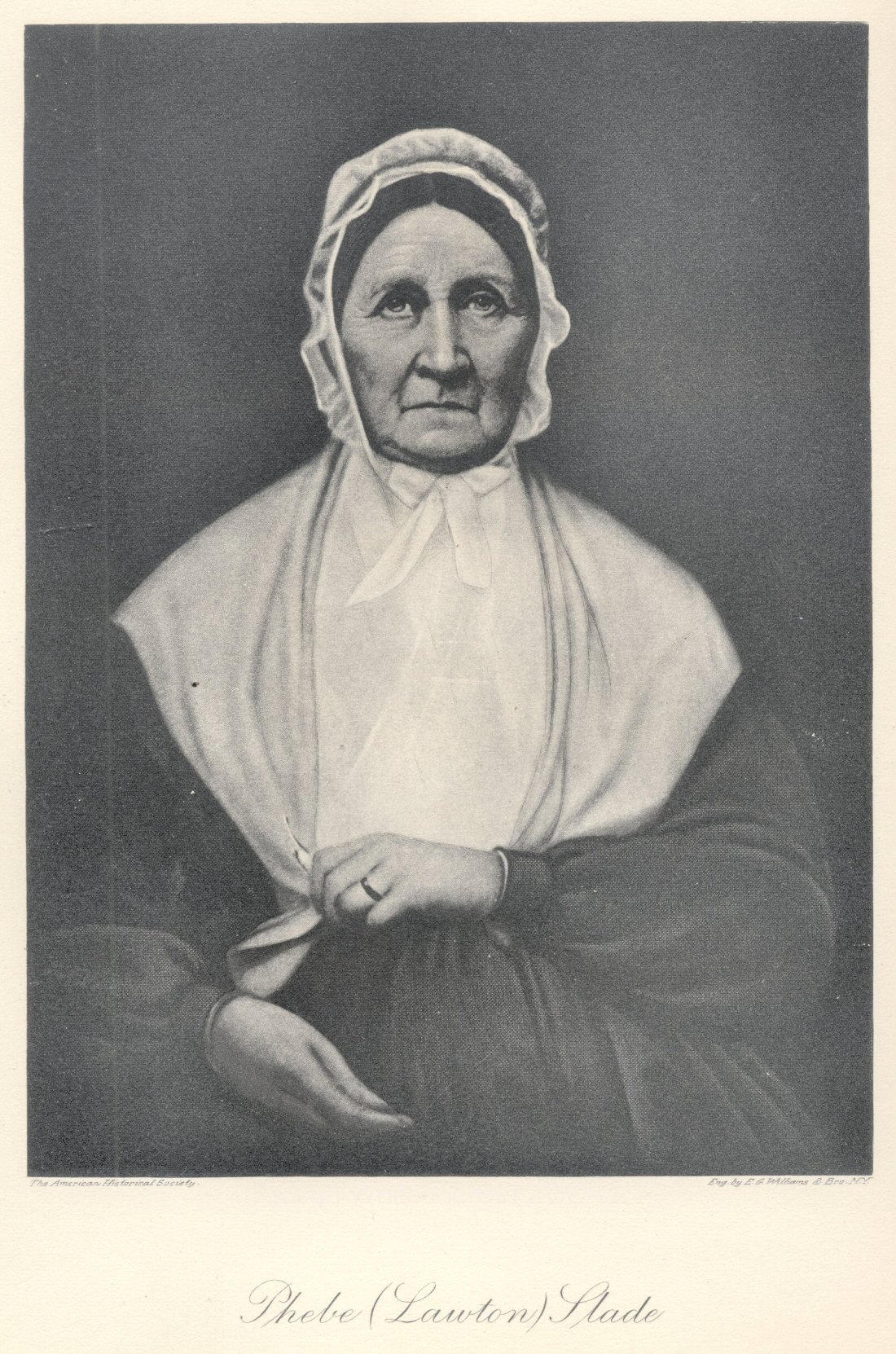 William Lawton Slade was one of the originators of this company; and has been its president since the [Page 212] date of its incorporation in 1871. He has always identified himself with its interests, and its welfare has been his constant care. He gave freely of his time and thought to the business of the corporation. Every subject presented to his attention received from him calm consideration and mature deliberation, and his judgment was universally respected. He was broad in his view, farseeing in his suggestions and looked not alone to the present, but to the future.Mr. Slade married, October 5, 1842, Mary Sherman, daughter of Asa and Elizabeth (Mitchell) Sherman, of Portsmouth, R. I. (See Sherman VI). She was born September 16 1815, in Portsmouth, and died March 29, 1900, in Somerset, Mass. Children: 1. Caroline Elizabeth, mentioned below. 2. Abigail L., born March 15, 1848; married James T. Milne; died Nov. 5, 1872. 3. Mary, born July 12, 1852, died Aug. 15, 1877; married Velona W. Houghwout, and left three children: Mary, Alice, and Elizabeth; of these, Mary and Elizabeth died in young womanhood, and Alice is the wife of Preston C. West, and resides in Saskatchewan, Canada. 4. Sarah Sherman, died young. 5. Anna Mitchell, died young.He was a man of noble presence, high character, sound judgment and unswerving integrity. He was pleasant in his manner, and was universally esteemed and respected.