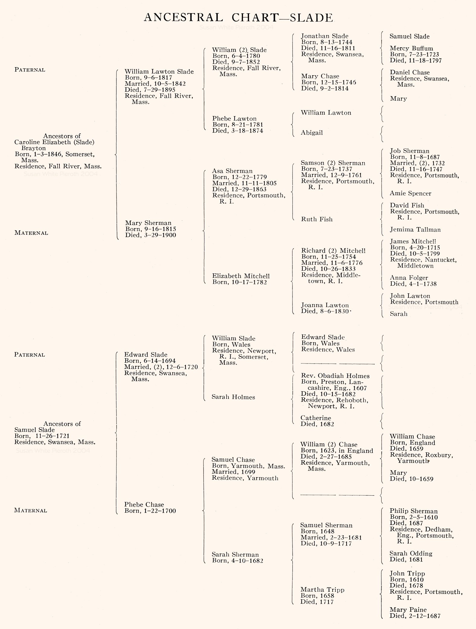 | Phebe (Lawton) Slade | Ancestral Chart - Slade |